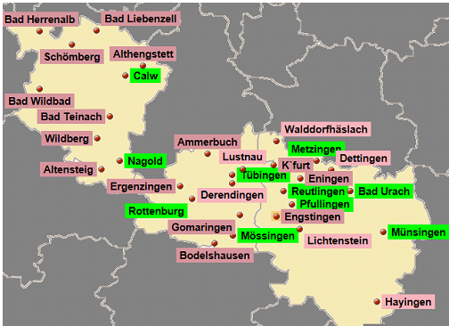 Orte mit Betreuungsgericht: Calw, Nagold, Rottenburg, Tübingen, Reutlingen, Bad Urach, Münsingen