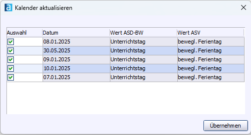 - Sofern zuerst im Kalender bewegl. Ferientage oder Konferenztage eingepflegt wurden,