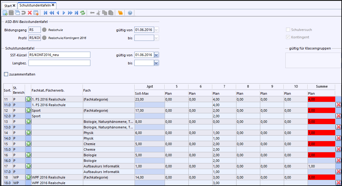 Im Modul Schulstundentafeln erstellen Sie auf Grundlage einer Basisstundentafel solche Schulstundentafeln, die Ihr konkretes Unterrichtsangebot abbilden.