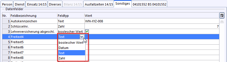 Ihnen stehen bei der Neuanlage die Feldtypen boolescher Wert, Datum, Text und Zahl zur Verfügung: