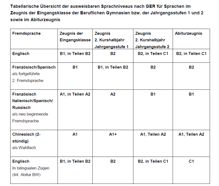 Hinweis: Im Bildungsgang WGI wird im Abiturzeugnis der Wert C1 gesetzt sofern erreicht. |