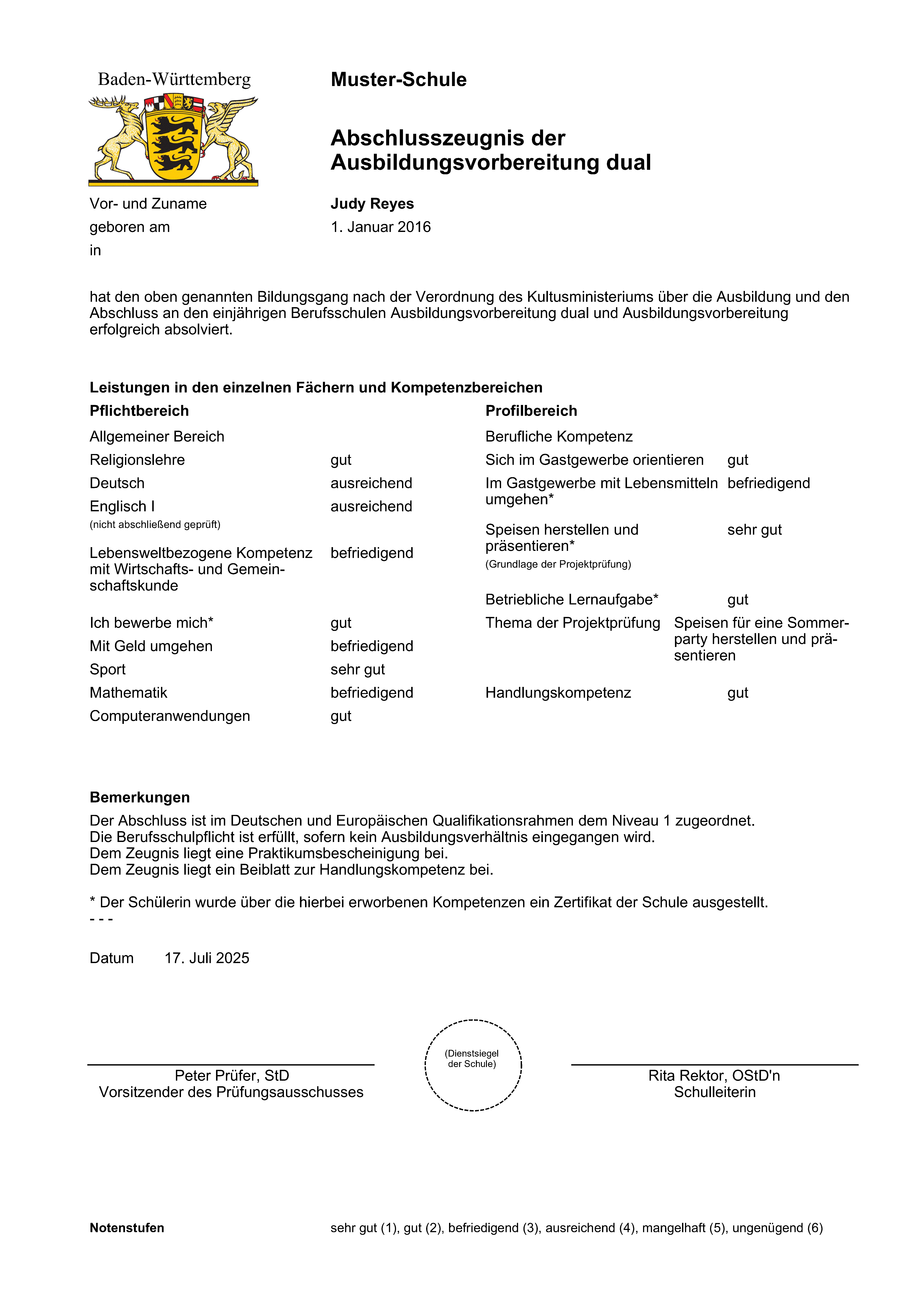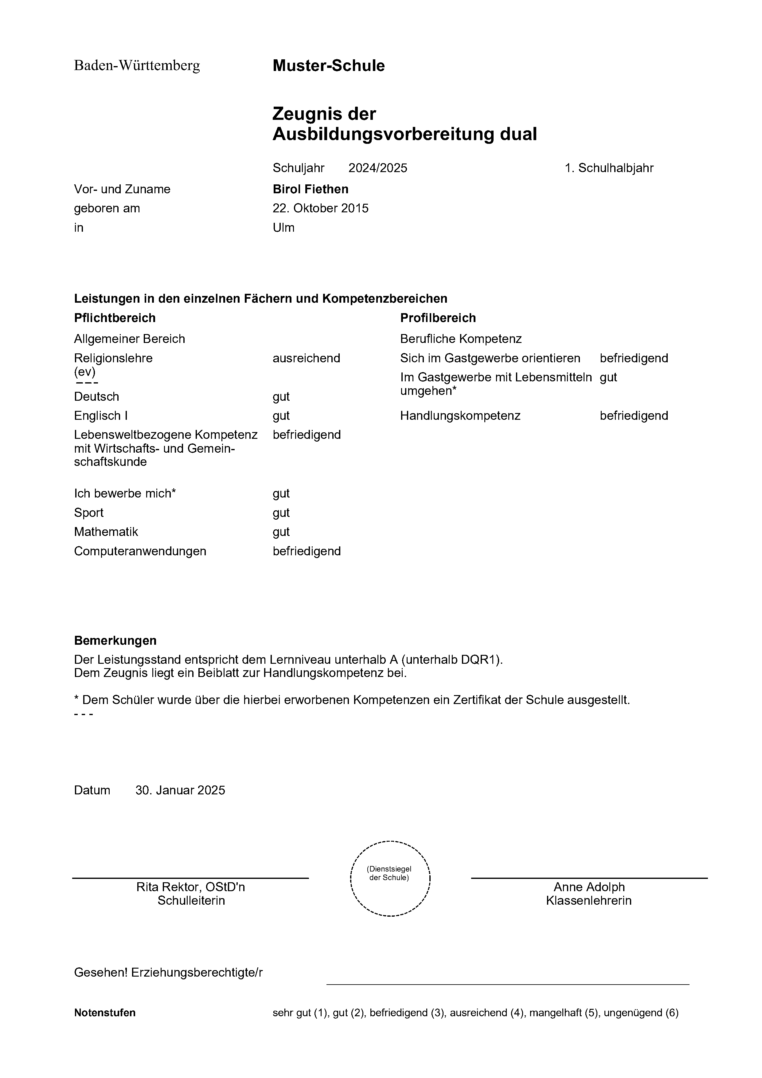 >In AV und AV Dual gibt es für Schüler, die im Niveau 2BF unterrichtet werden, kein Halbjahreszeugnis, sondern eine Halbjahresinformation.