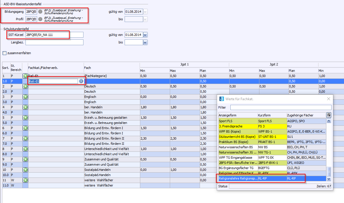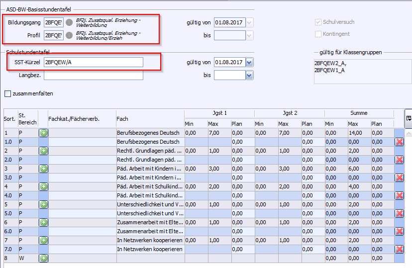 Abschluss der schulischen Ausbildung (Schulfremdenprüfung) siehe Hilfe BKSP |