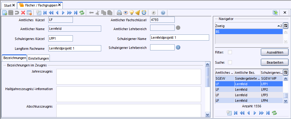 >In der Spalte Bezeichnung Zeugnis können die Bezeichnungen der Lernfeldprojekte für die Ausgabe auf dem Zeugnis angepasst werden.