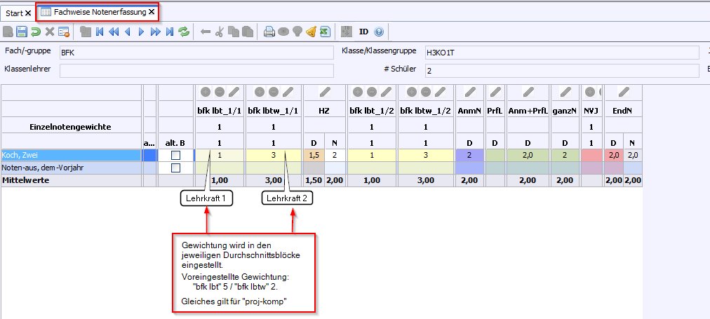 | 3 | ergänzende Noteneinstellungen; wurden bisher keine Notenblöcke importiert, aber bereits Halbjahreszeugnisnoten erfasst, können diese Noteneinstellungen trotzdem hinzugefügt werden; siehe Notenblöcke ergänzen. |