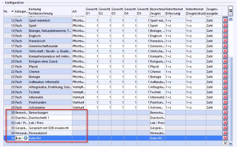 •Die Zusatzkategorie koko-RU wird benötigt, falls in den Klassen Konfessionell kooperativer Religionsunterricht erteilt wird.