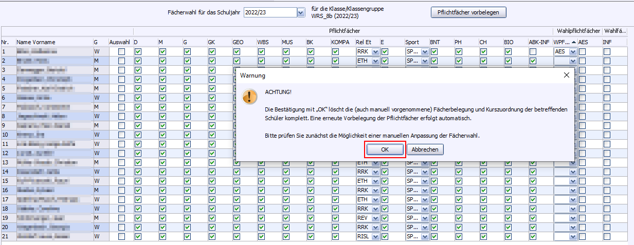 Im Modul Fächerwahl (Datei: Schüler