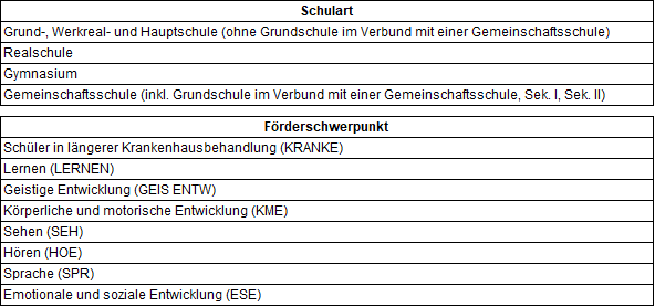 •Pro Schulart bzw. Förderschwerpunkt (FSP) muss ein eigenständiger Bogen ausgefüllt werden. Schulen mit mehreren Schularten oder FSP müssen für jede Schulart/FSP einen eigenständigen Bogen ausfüllen.