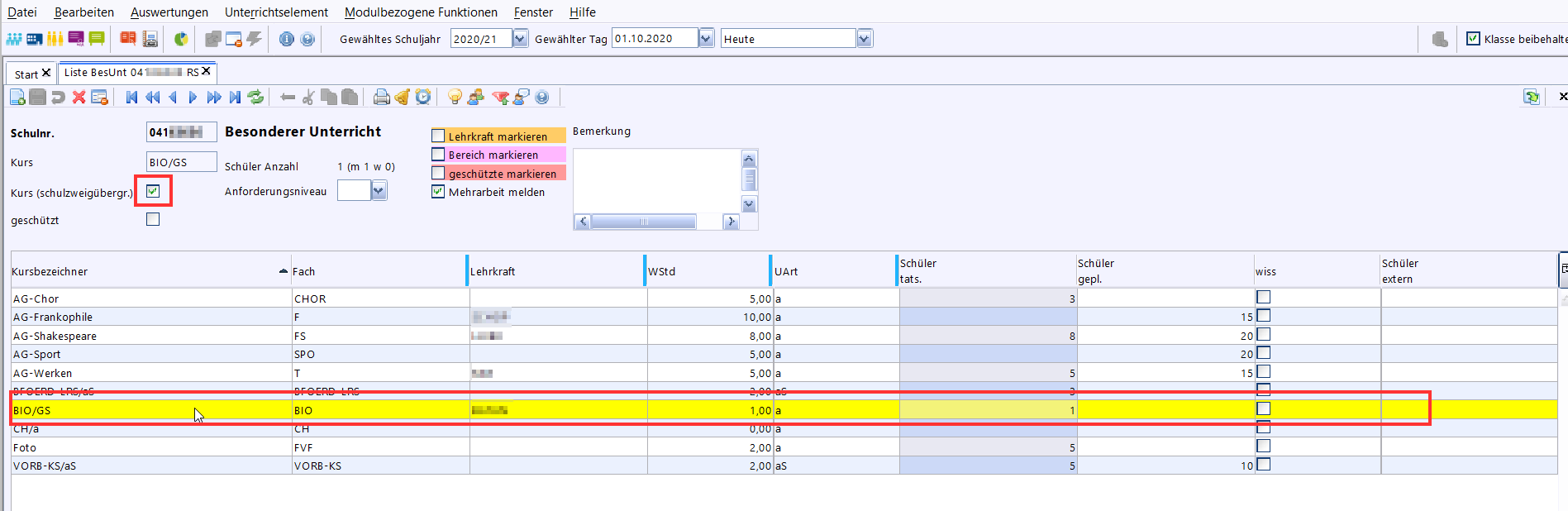 Wichtig: die beschriebene Vorgehensweise dient nur zur Abbildung des schulzweigübergreifenden Unterrichts in der ESS!