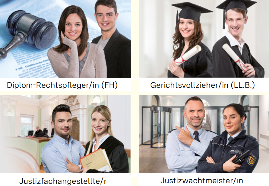 Die Justiz in Baden-Württemberg bietet vielen Personen mit den unterschiedlichsten Schulbildungen interessante Ausbildungs- und Arbeitsstellen in den unterschiedlichsten Bereichen