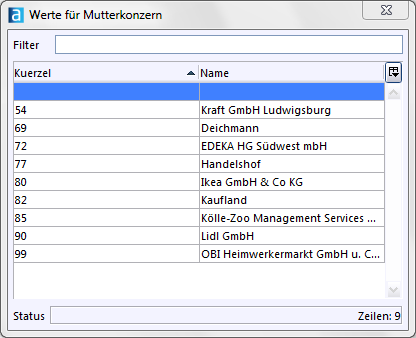 Die dem Feld Mutterkonzern (Zentrale) des aktuellen Betriebs) hinterlegte Werteliste setzt sich aus allem Betrieben zusammen, bei denen das Kontrollfeld Aktuellen Betrieb als Mutterkonzern (Zentrale) kennzeichnen aktiviert ist. So ist es möglich einem Betrieb den Mutterkonzern zuzuweisen.
