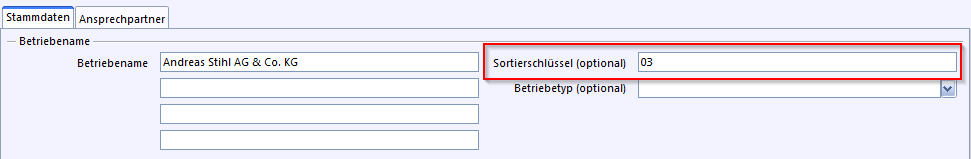 Sie können dabei mehreren Betrieben identische Sortierschlüssel vergeben, um diese zu gruppieren (z.B. alle Filialen und die Zentrale eines Betriebs erhalten den Sortierschlüssel 05).