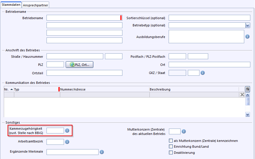 •Betriebeart: Es wird angezeigt, ob es sich um einen Ausbildungs- und/oder Praktikumsbetrieb handelt.