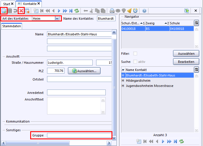 Alle weiteren Datenzeilen sind frei editierbar. Nach Klick auf das Symbol Speichern ist der Kontakt angelegt.