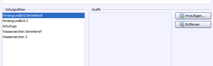 Außerdem kann unter dem Eintrag Schulgrafiken das Schullogo der Schule hinterlegt werden, um es ggf. bei Berichten etc. einzubinden.