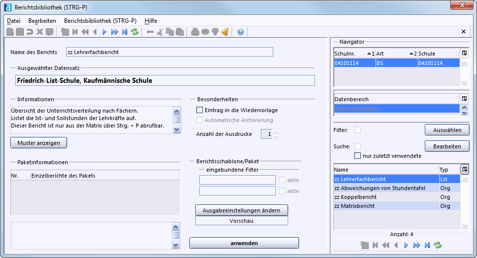 Die Unterrichtsmatrix wird anhand einer Kombination aus Stundentafeln, Klassen, Fächern und Schülerfachwahlen erstellt. In ihr erfolgt die Zuweisung der Lehrkräfte und Schüler zu den verschiedenen Unterrichtselementen.