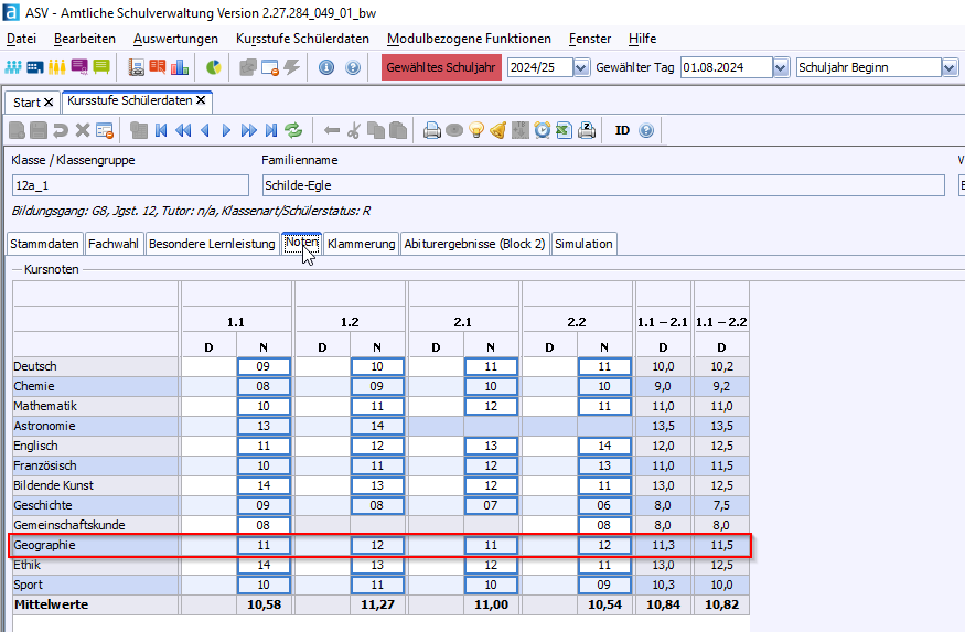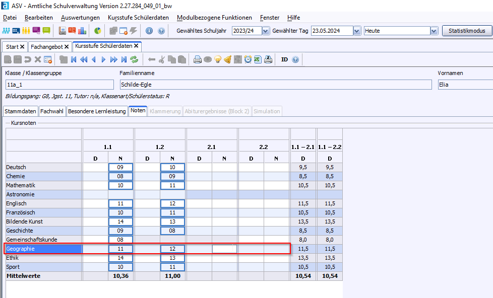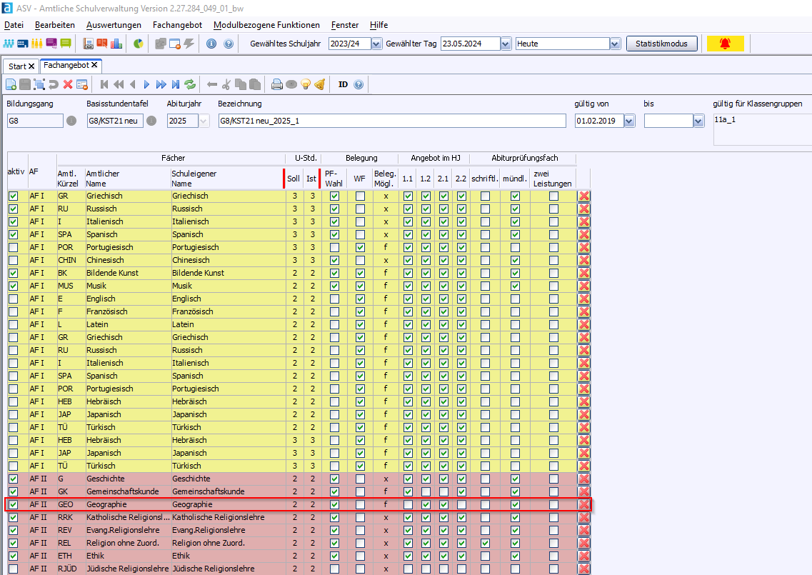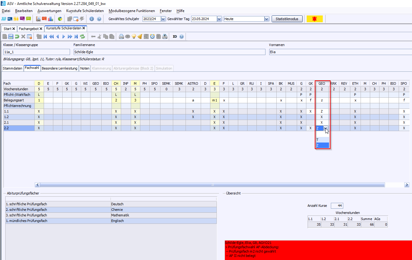 Navigation: Kursstufe (AGY/BGY/GMS)