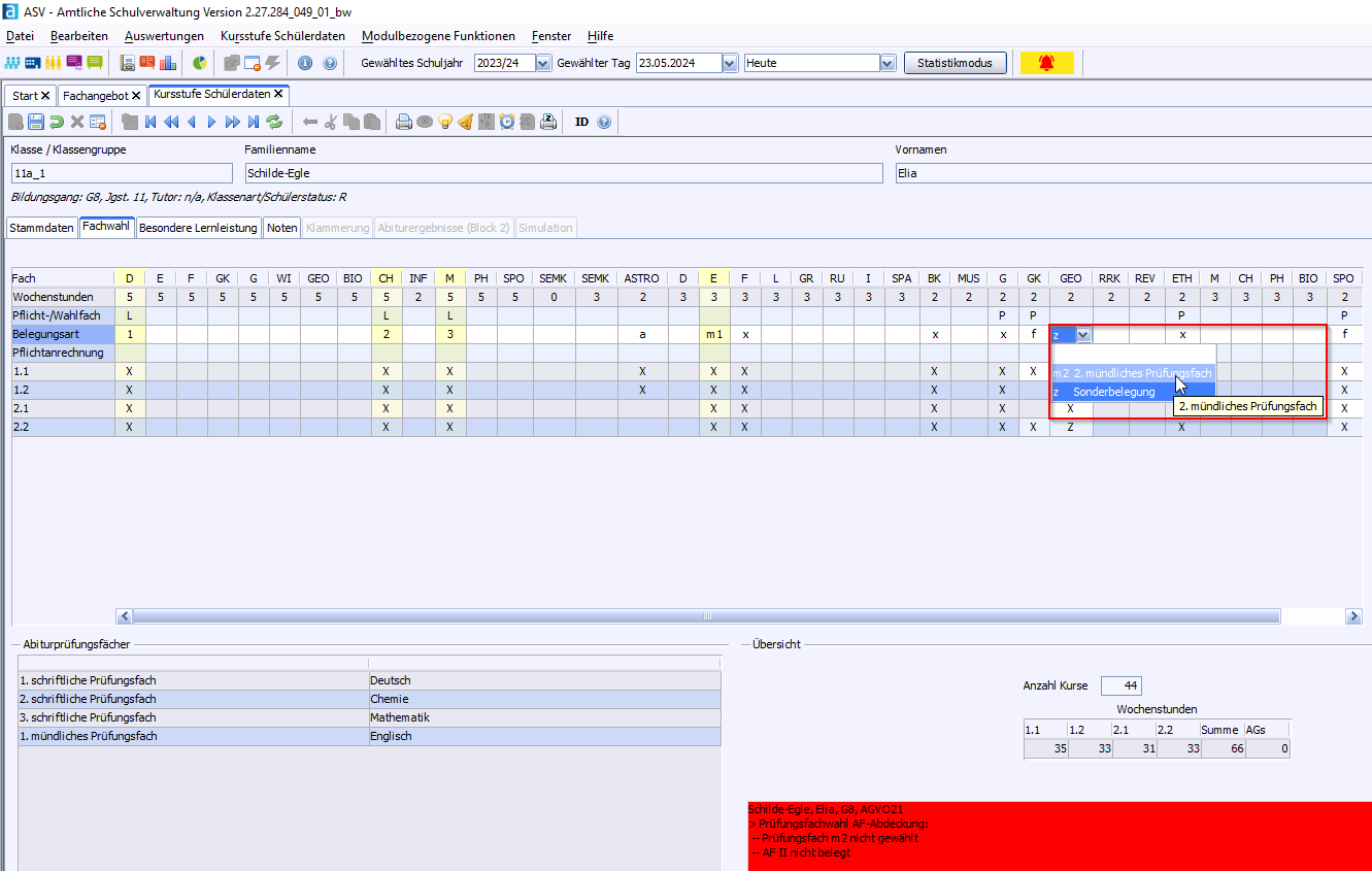 Fachhochschulreife: die Bescheinigung über den schulischen Teil der Fachhochschulreife bzw. das Zeugnis der Fachhochschulreife können derzeit noch nicht über ASV-BW erstellt werden.