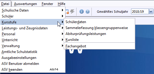 Die Fachangebote nach der neuen BGVO sowie das neue Kursstufenprotokoll für Abiturjahr 2024 stehen erst nach einen Schuljahreswechsel 2021/2022 in ASV-BW zur Verfügung, der ab 1. Februar technisch möglich ist. Schüler, die nicht zum Abitur zugelassen wurden und in die J1 zurückgestuft werden sollen, müssen vor dem Anlegen der Planungsphase zurückversetzt werden.