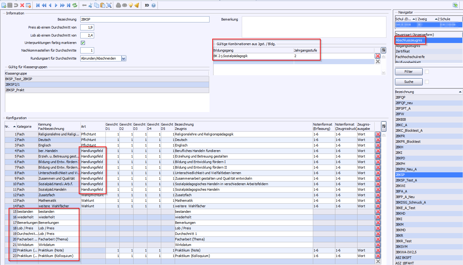 Die unterschiedlichen Texte auf den Zeugnissen werden gemäß der in den Klassen zugewiesenen Stundentafeln erstellt. Siehe Voraussetzungen.