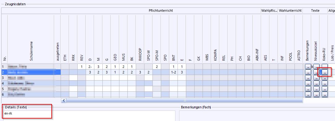 In den Bemerkungen wird folgender Text ausgegeben: "Der Religionsunterricht wurde konfessionell-kooperativ erteilt." |