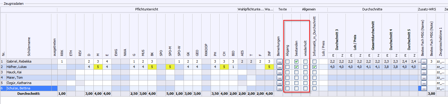 •Ggf. kann auch Durchschnitt 3 für die Berechnung der Notendurchschnitte des Schülers in den Zeugniseinstellungen aufgenommen werden.
